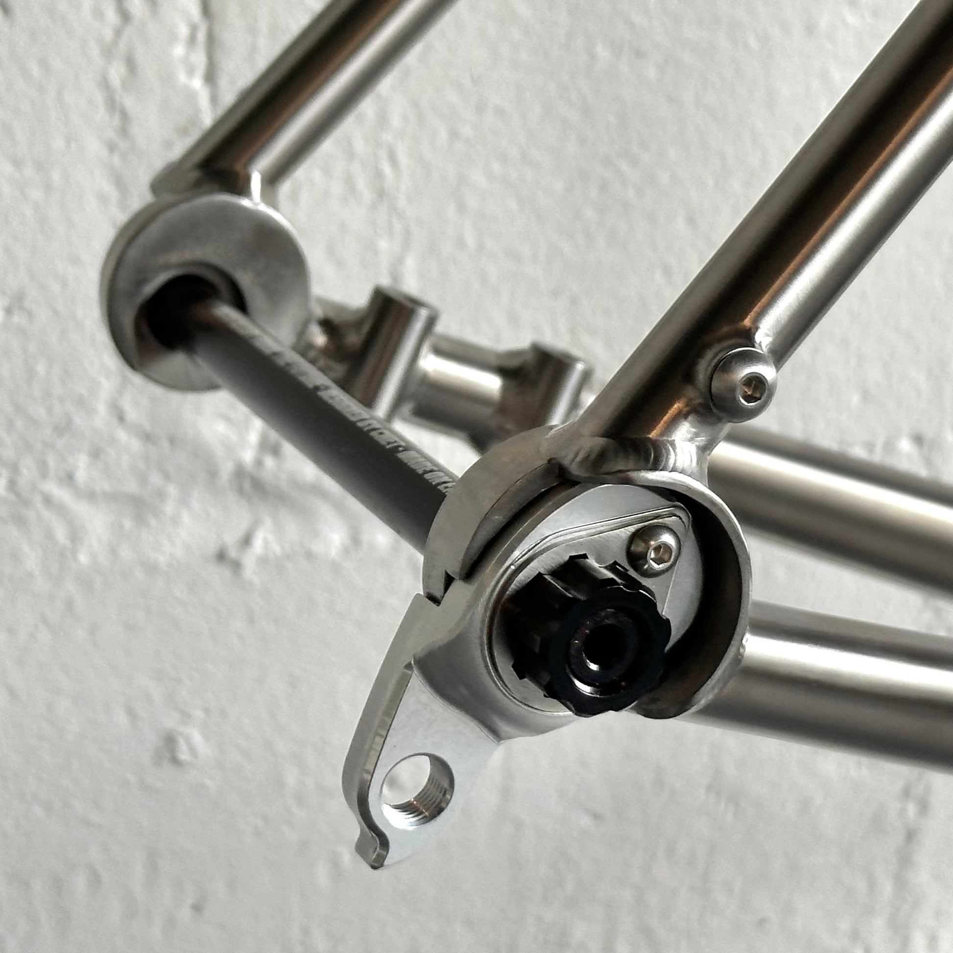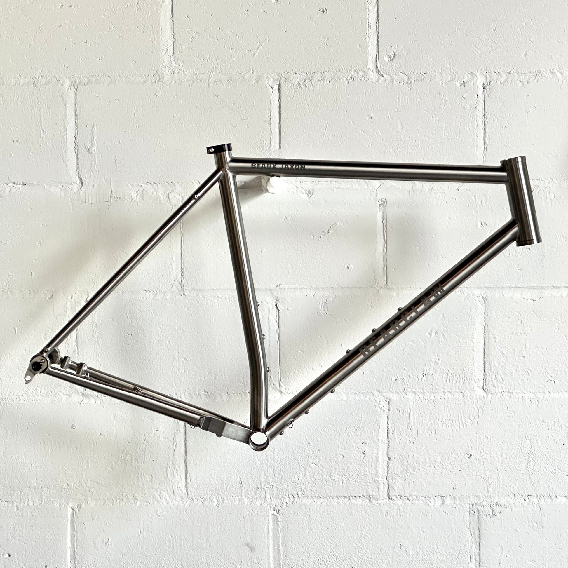 This is our previous generation (2024) Beaux Jaxon Titanium Gravel Plus frame. It’s brand new. It’s a winner. We have a limited number of these available at a great price. The biggest difference between it and the current gen frame is NO UDH which is NO BIG DEAL.