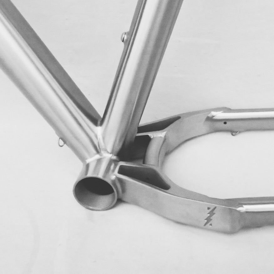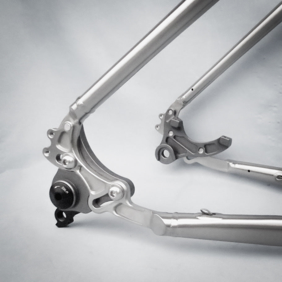 - 6AL-4V billet head tube, bb, dropouts, and chainstay plate